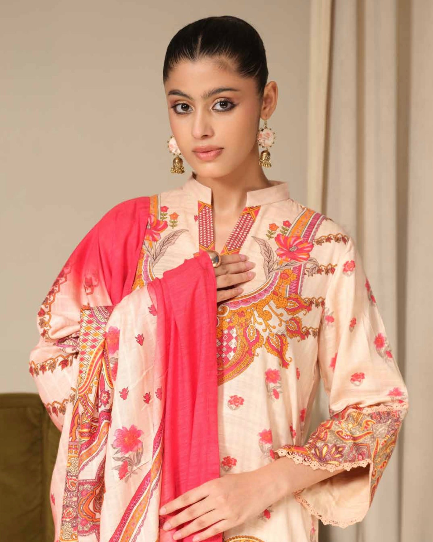 Embroidered plus Printed Peach Leather with Printed Peach Leather Shawl