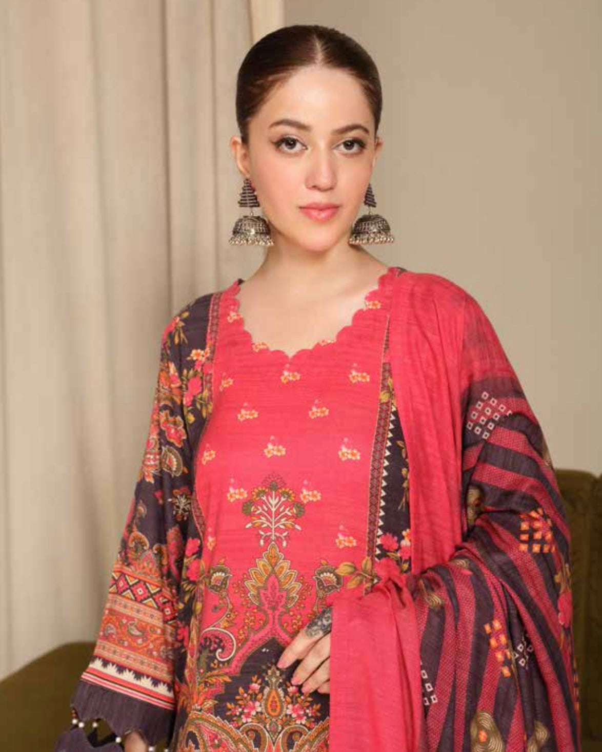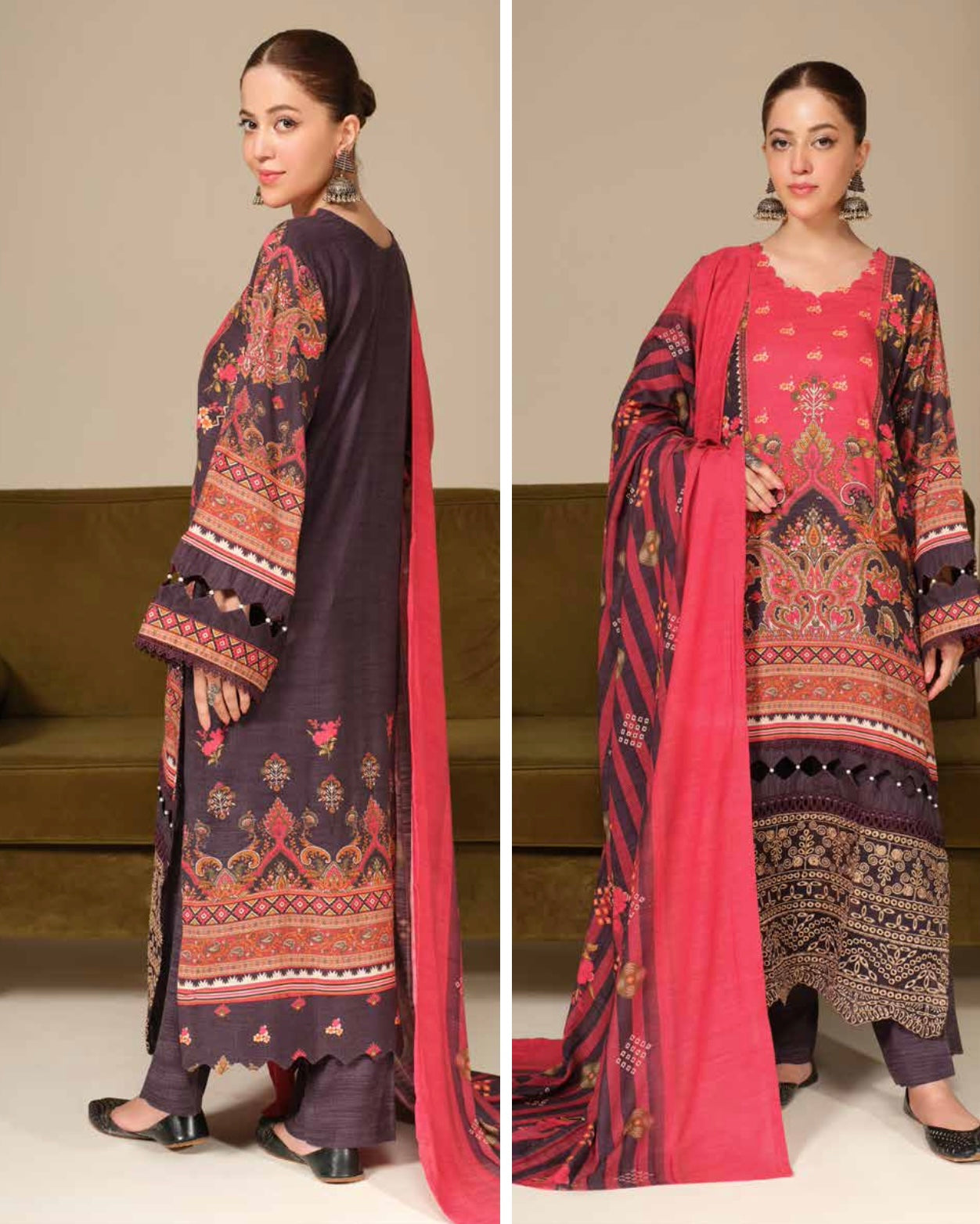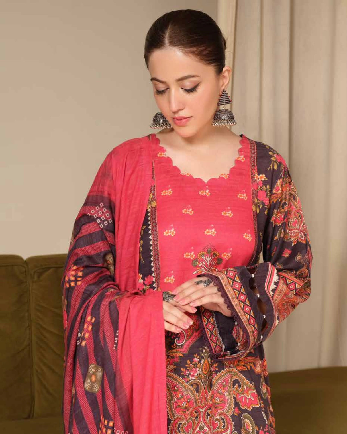 Embroidered plus Printed Peach Leather with Printed Peach Leather Shawl