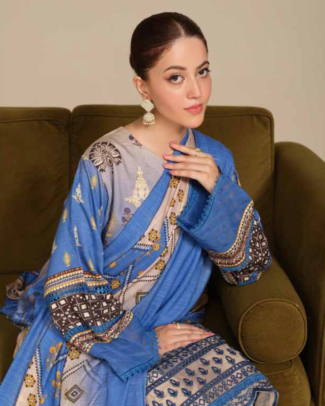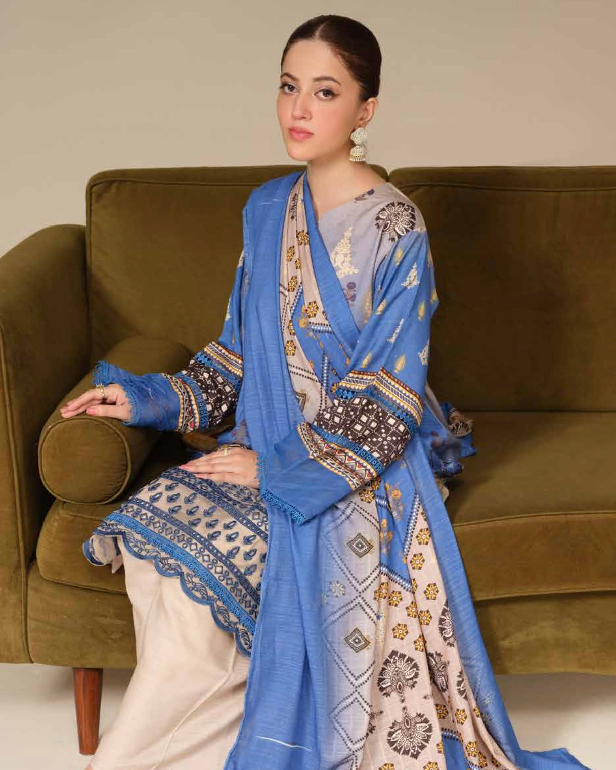 Embroidered plus Printed Peach Leather with Printed Peach Leather Shawl
