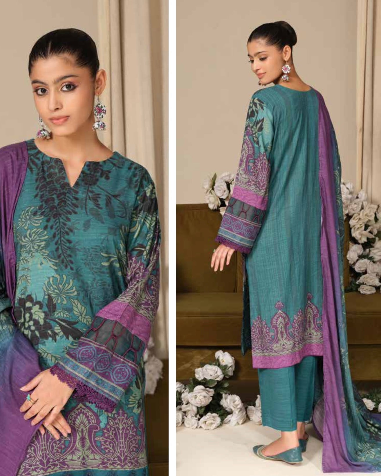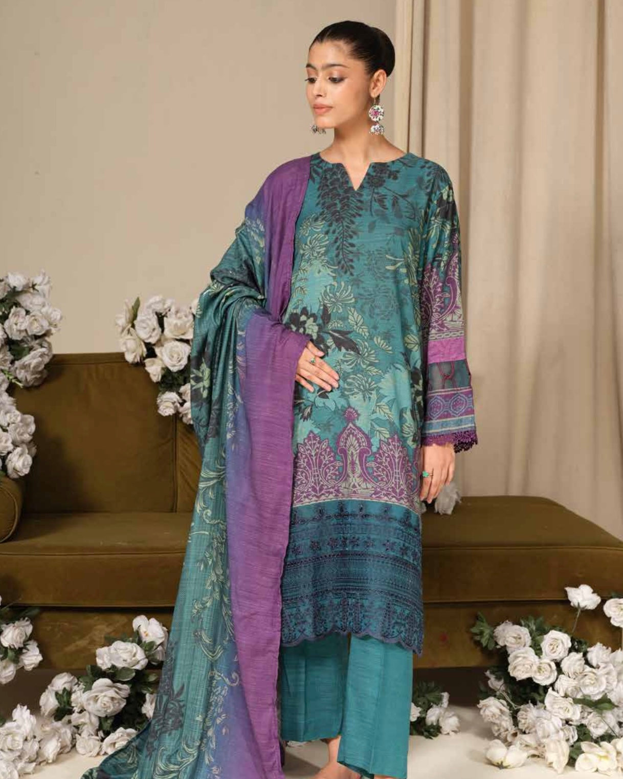Embroidered plus Printed Peach Leather with Printed Peach Leather Shawl