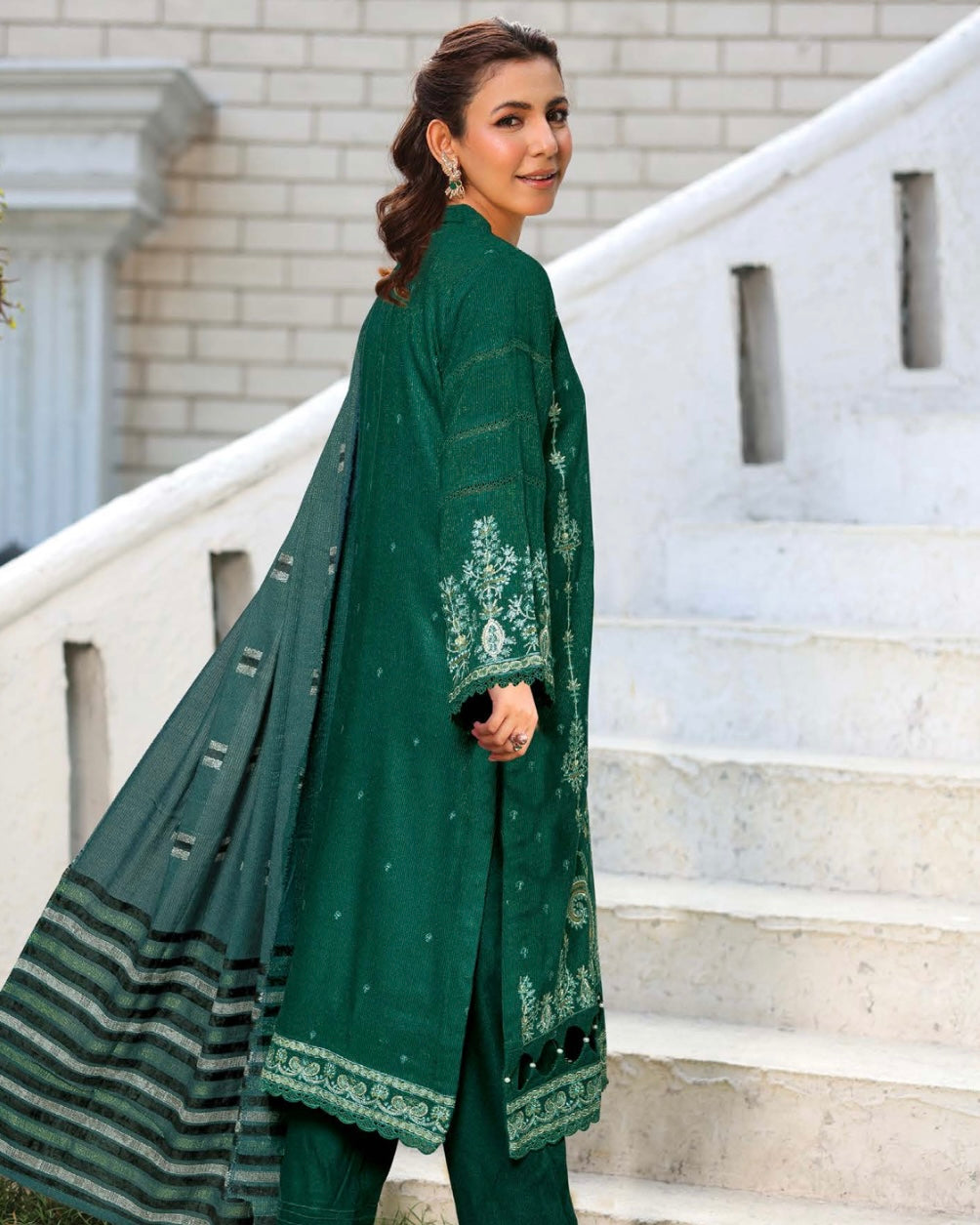 Embroidered Zari Peach Leather with Velvet Jacquard Shawl